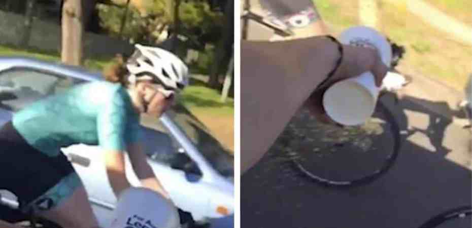 Vídeo de um incidente no qual um passageiro de carro surpreendentemente jogou suco de laranja sobre um ciclista viralizou nas redes sociais.