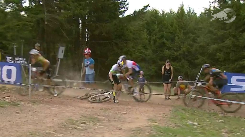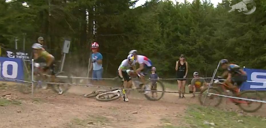 Na penúltima volta da prova, Henrique Avancini caiu. Ao tentar fazer uma curva, o brasileiro viu a dianteira da bicicleta escapar e a queda aconteceu então perdendo quase 10 segundos. Mesmo após o problema, Henrique reagiu e voltou entre os primeiros.