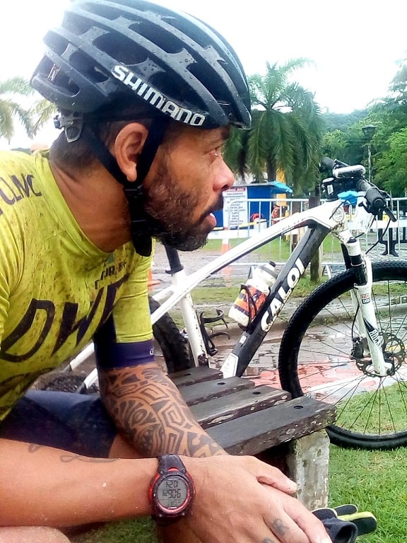 Ele irá se eternizar pelo fato, desse “muleke” de 13 anos, alinhar no maior evento Off Road do planeta XTerra. Aquela bikezinha dele 26, simples, de alumínio, sem equipamento top, no meio de um monte de adultos com bikes tops, fulls, equipamento tal, kit tal, suspa tal, blá, blá, blá, e botou para torar no meio dos caras, em pelote nervoso, numa chuva de lascar na largada, e lá estava ele, cabeça erguida, cara de brabo, de monstrinho, com quem quer dizer, me ‘respeita rapaziada’, pois eu treino, não me escondo em equipamentos, não faço de bengala o equipamento! Ele faz jus uma fala de “Mario Cortella” (Faça seu melhor nas condições que você tem, enquanto você não tem condições melhores para fazer melhor ainda!!)