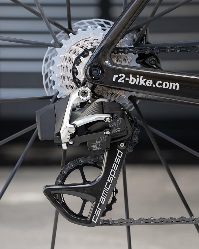- Passador traseiro: SRAM Red AXS com CeramicSpeed RS OSPW